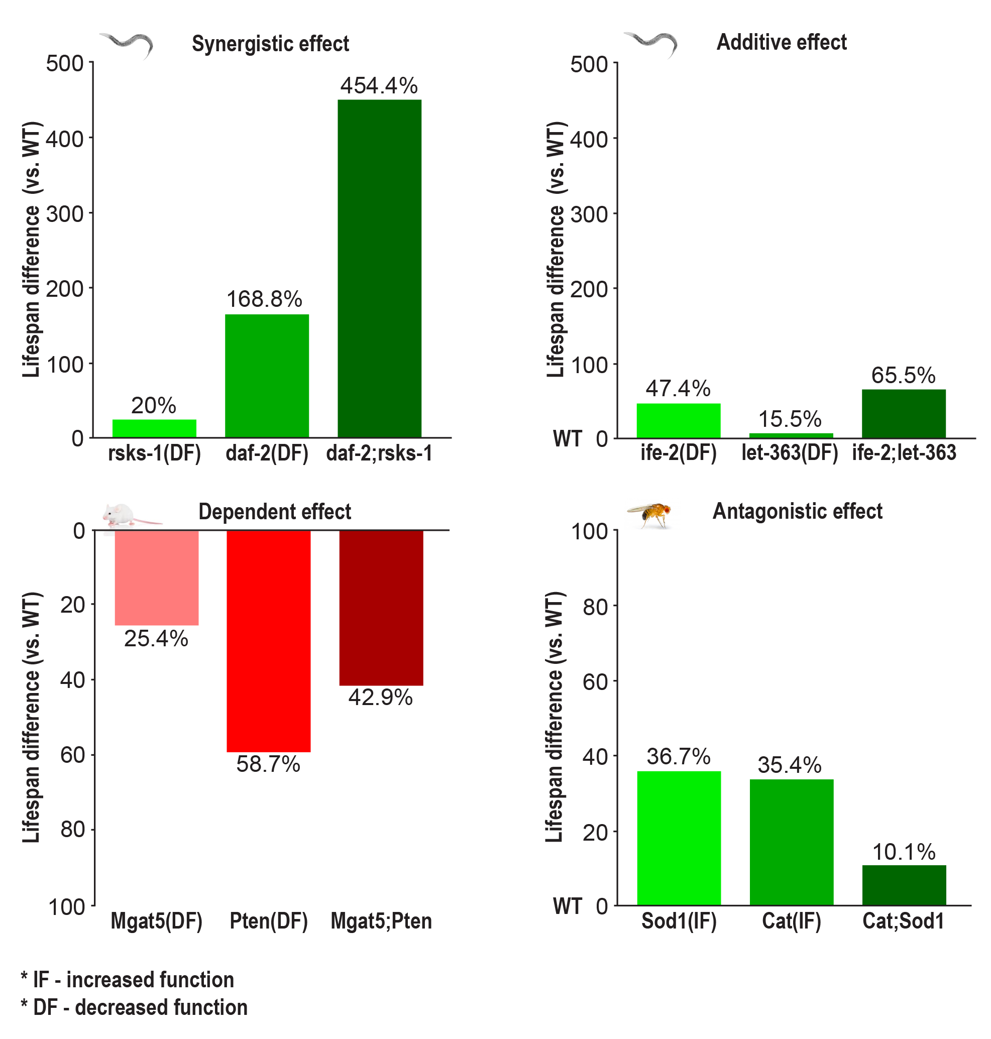 - What are the most effective single-gene interventions for lifespan extension across model organisms?
